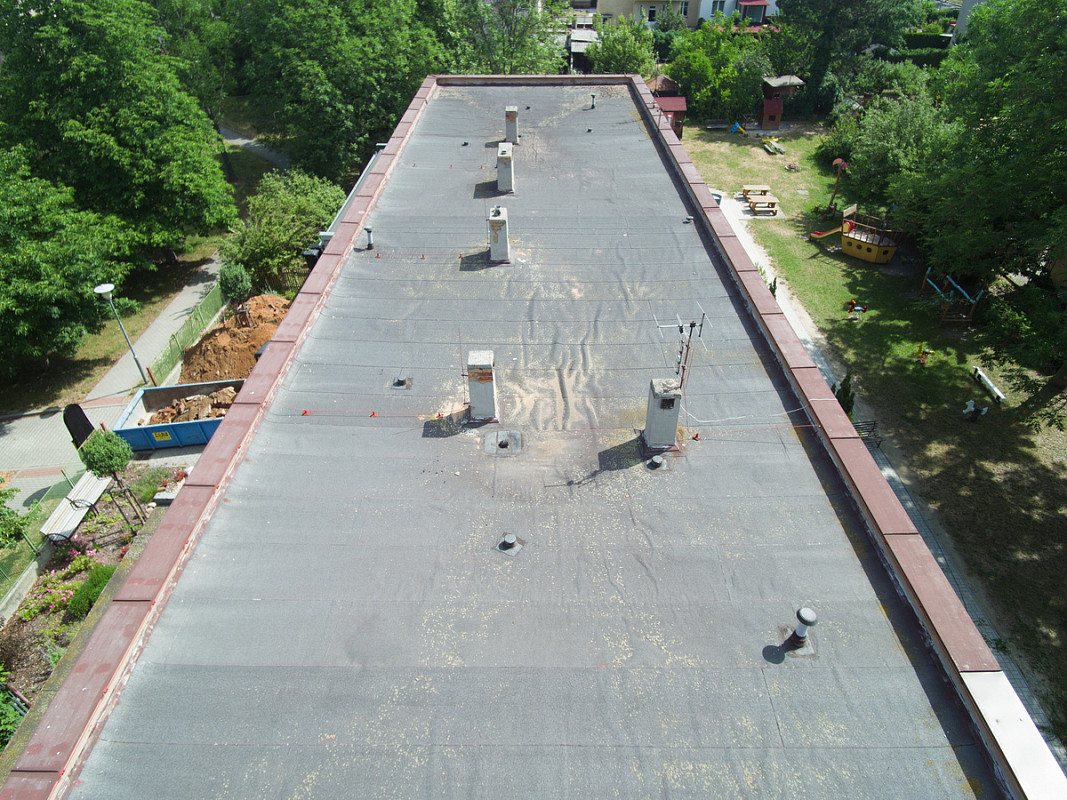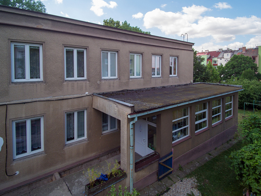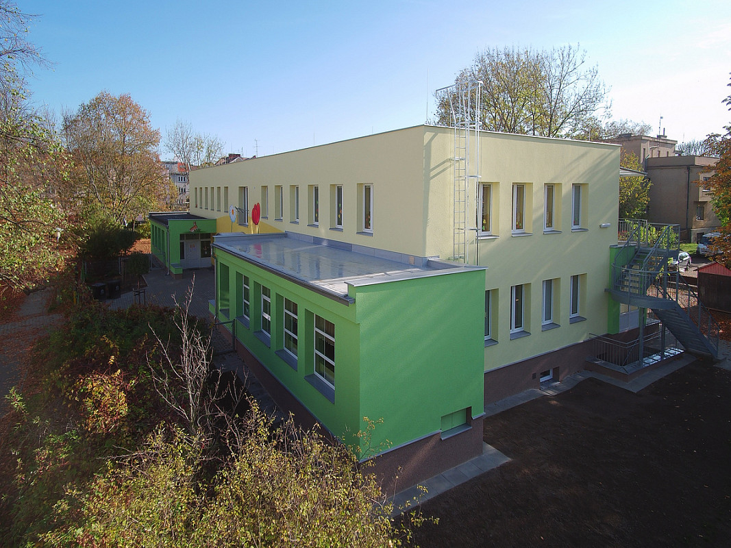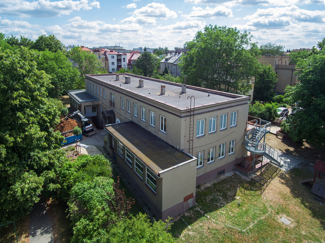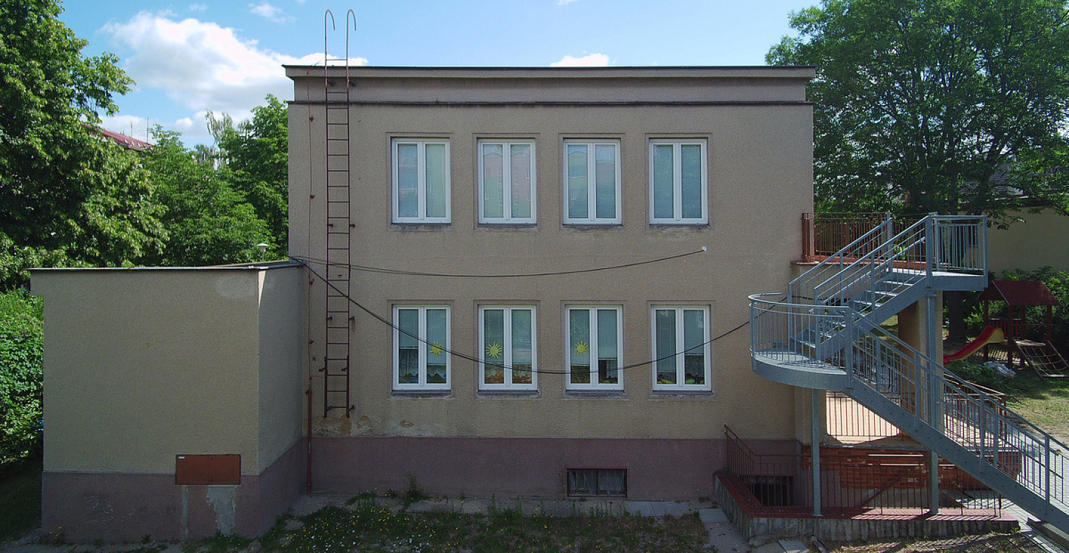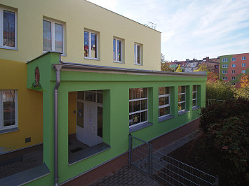 Zateplení fasády a střešního pláště budovy 51. mateřské školy v Plzni, ulice Částkova. Sanace suterénu. Realizace 2019.