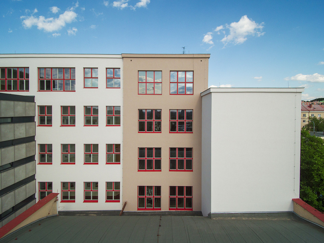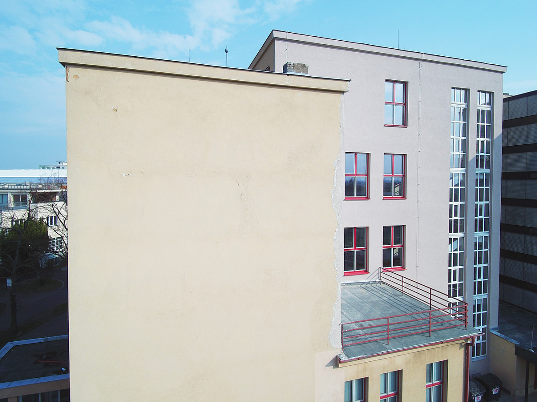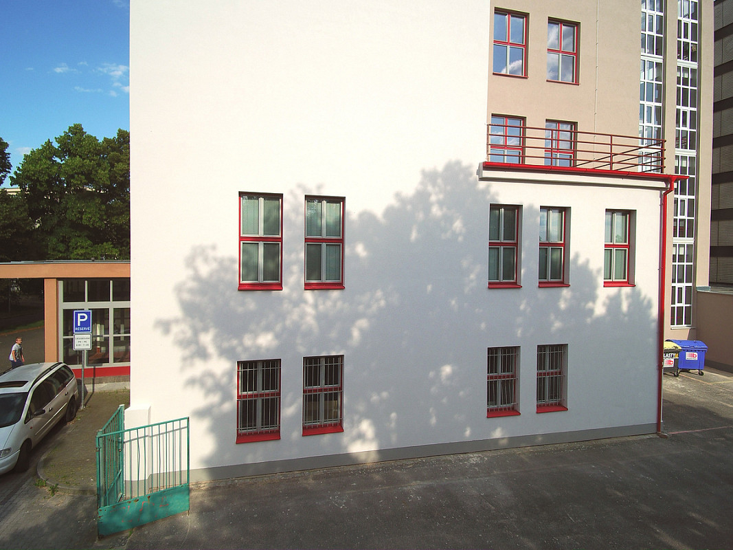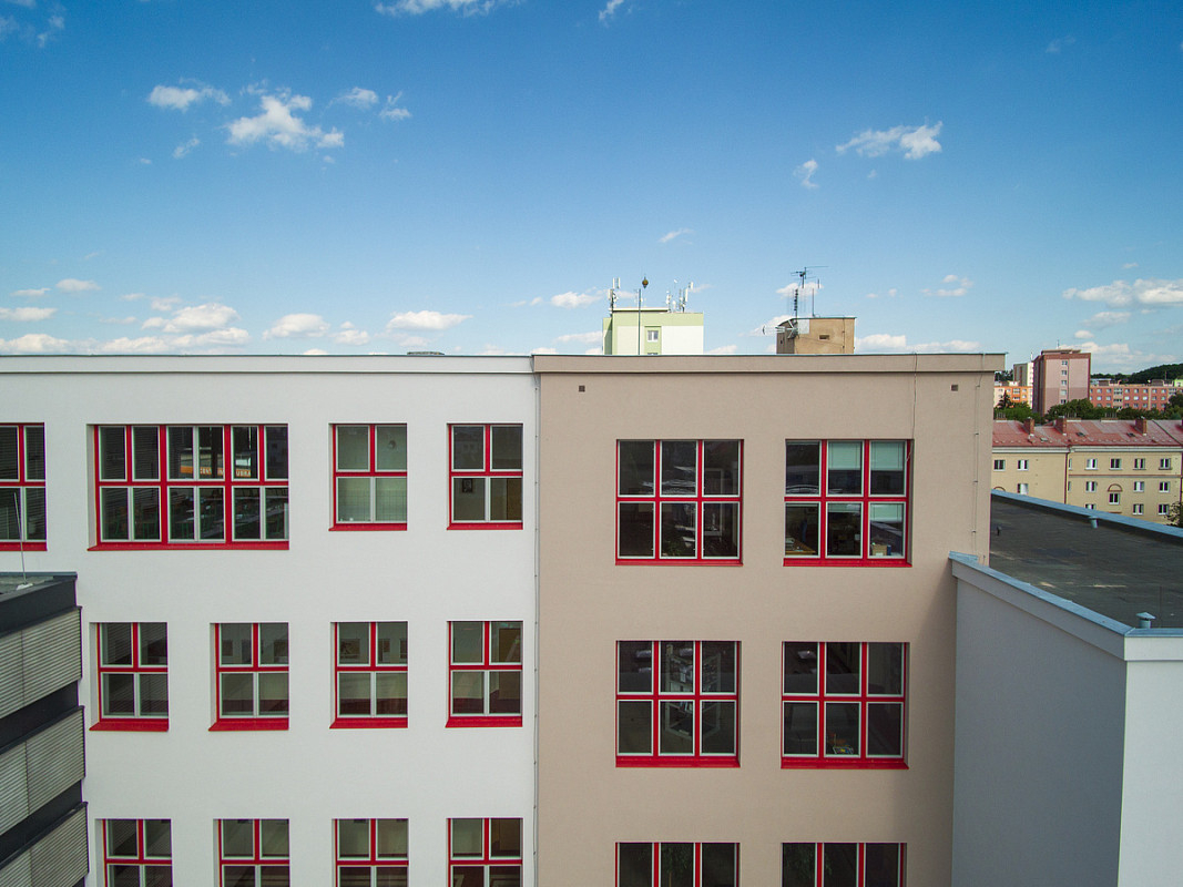 Rekonstrukce historické budovy Gymnázia Luďka Pika v Opavské ulici v Plzni. Oprava a obnova fasády památkově chráněného objektu, 3-6/2020.