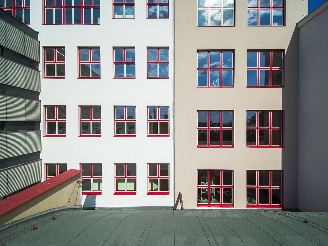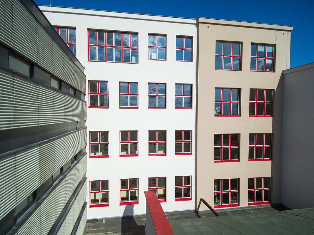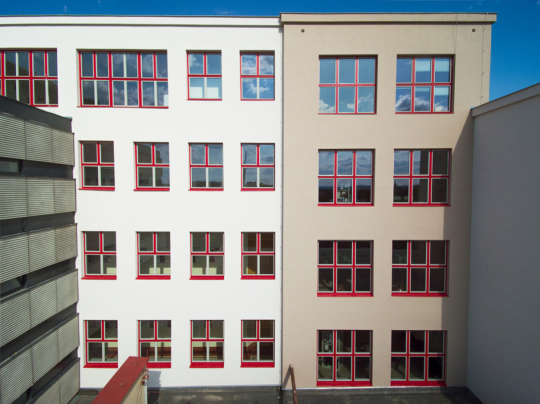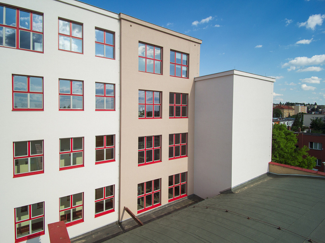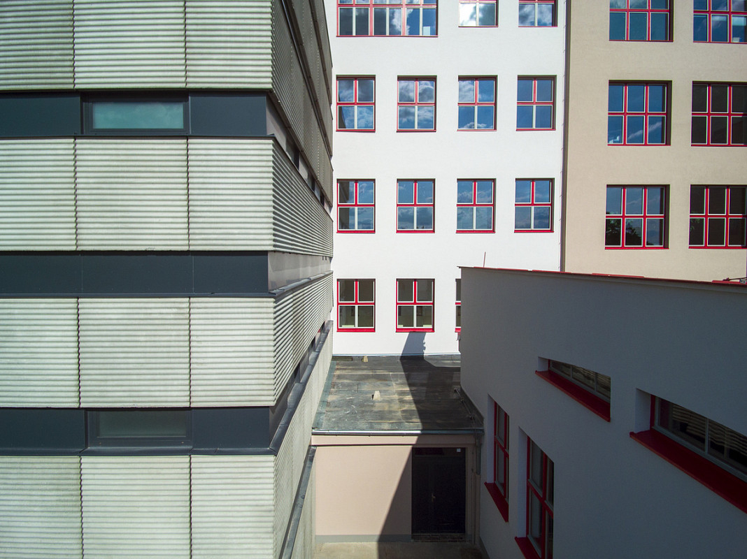 Rekonstrukce historické budovy Gymnázia Luďka Pika v Opavské ulici v Plzni. Oprava a obnova fasády památkově chráněného objektu, 3-6/2020.