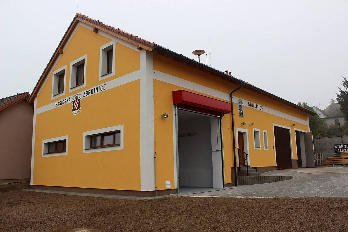 Výstavba a rekonstrukce hasičské zbrojnice v Liticích. Kompletní stavební realizace včetně zateplení fasády nového objektu.