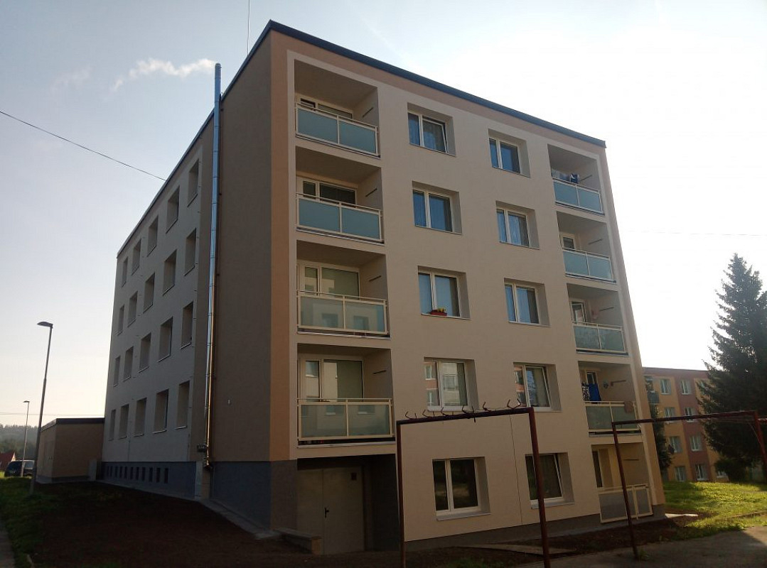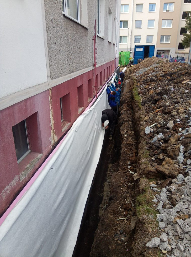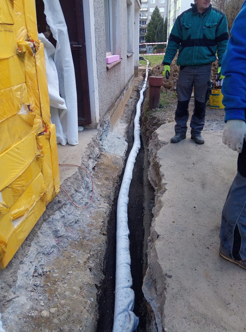 Zateplení fasády a sanace sklepních prostor bytového domu č.p. 291 v Holoubkově. Komplexní řešení tepelné izolace a vlhkostních problémů objektu.